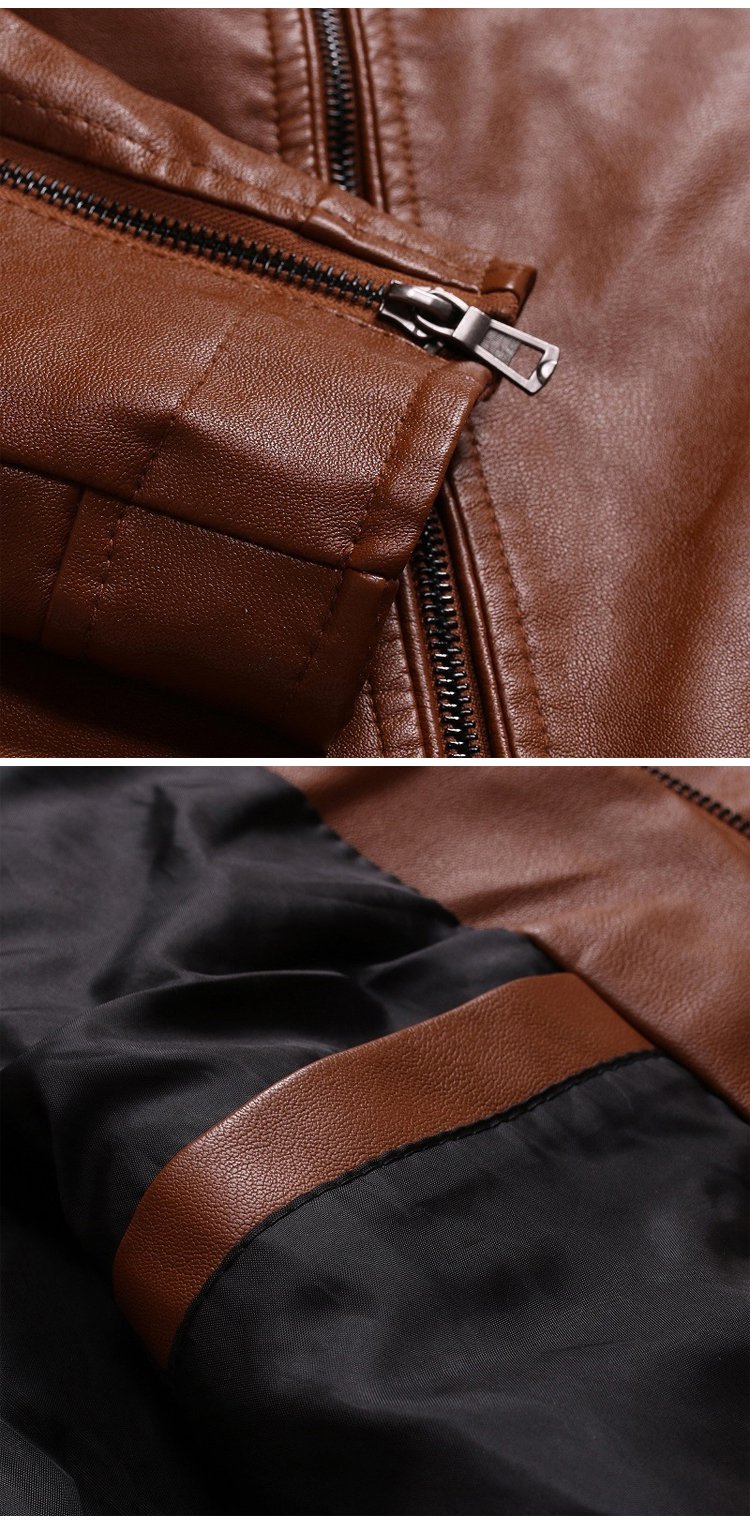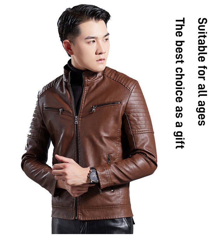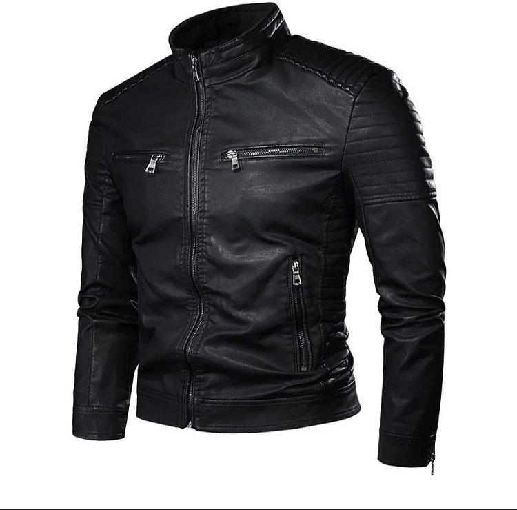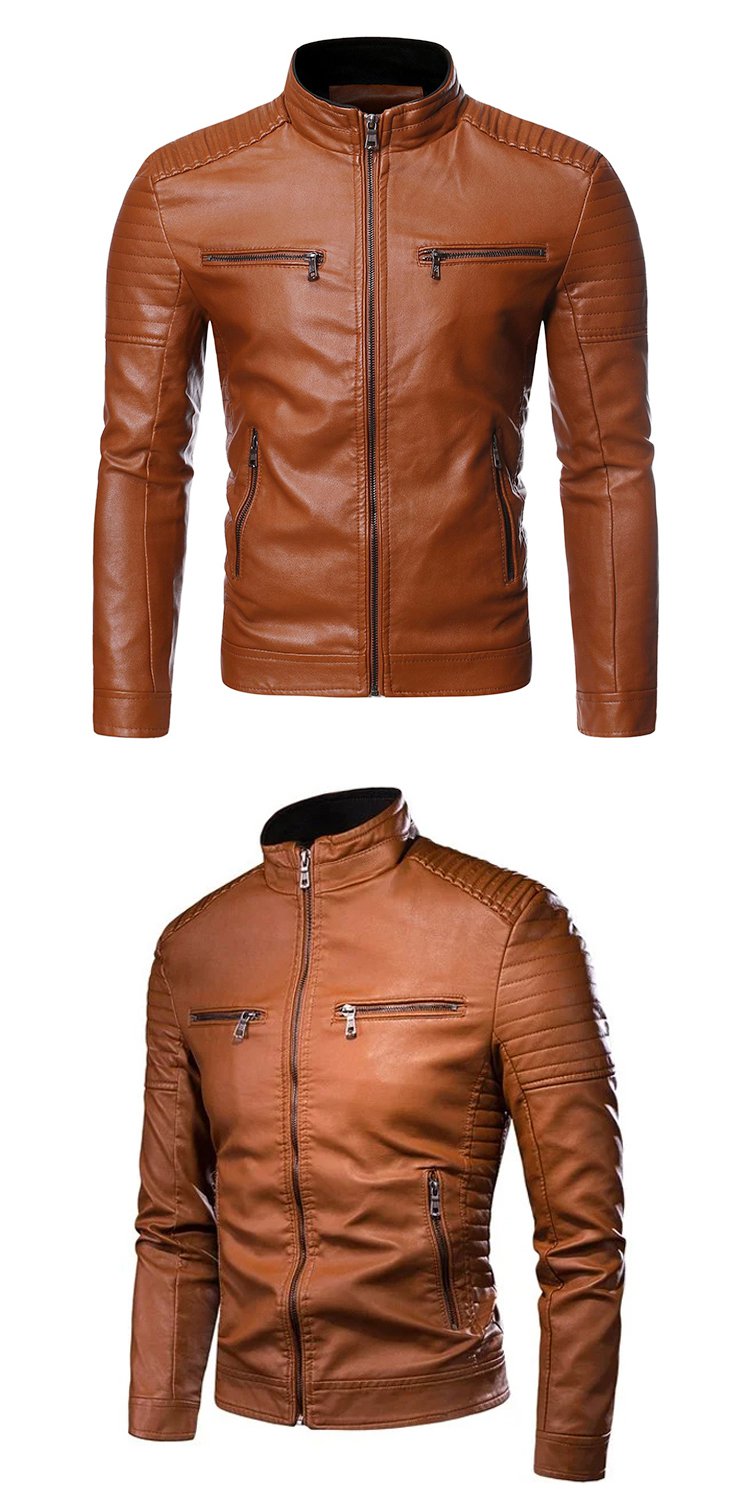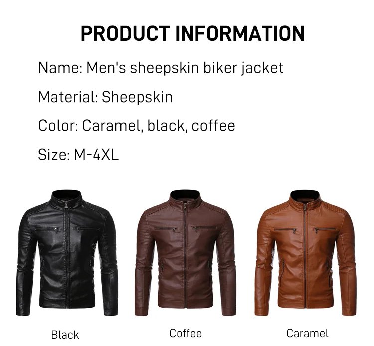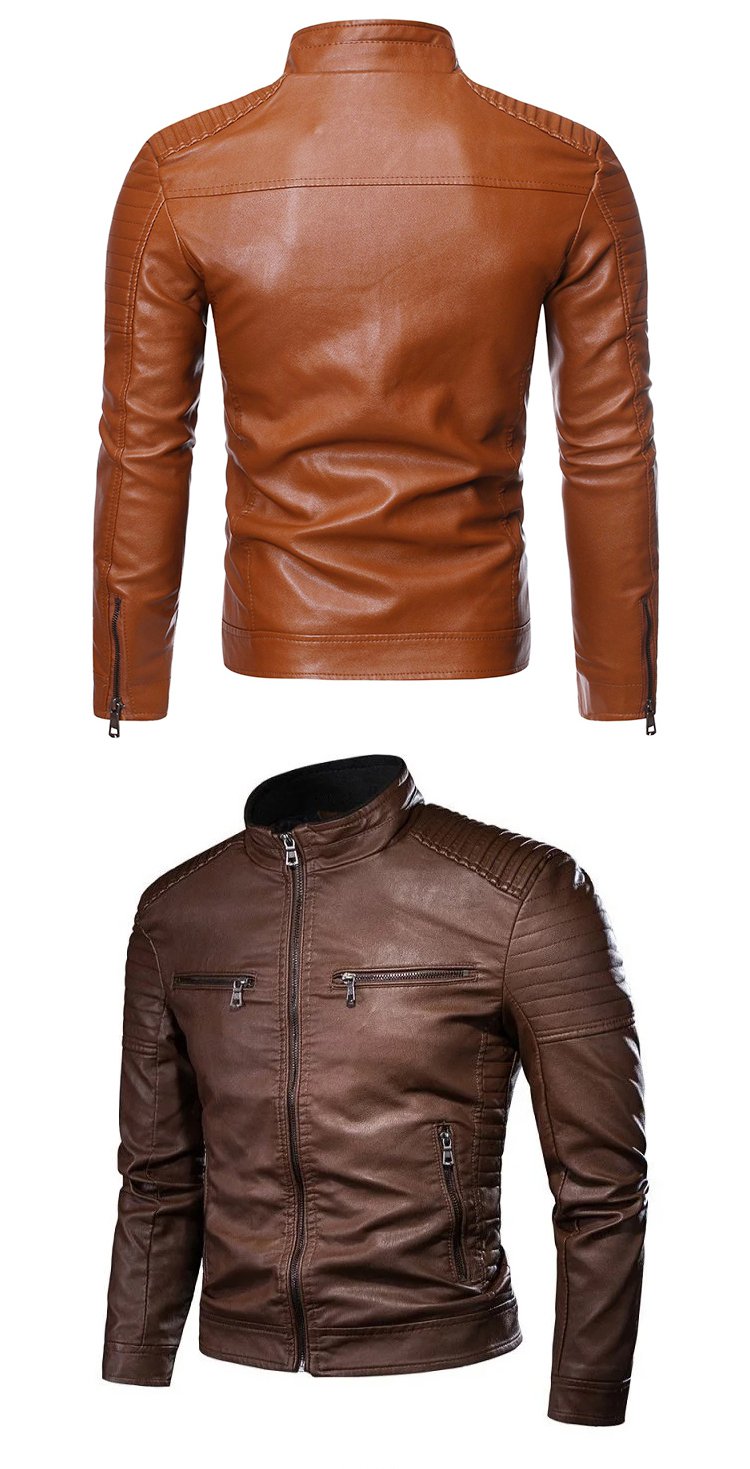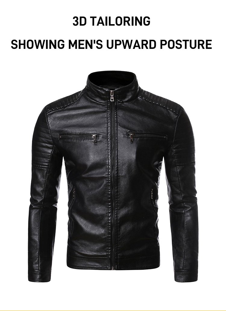 Stand-up collar men's biker leather jacket