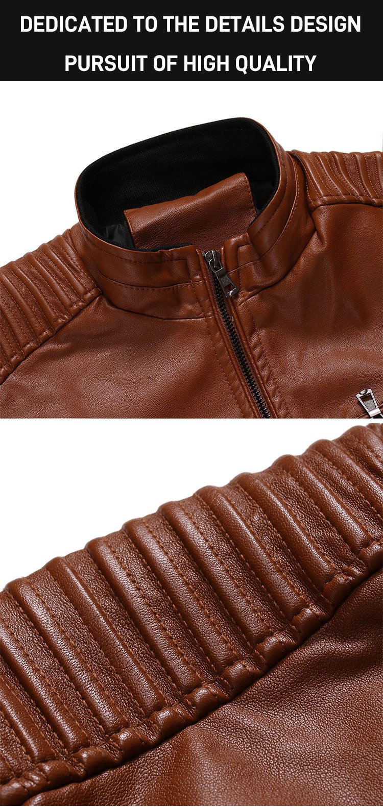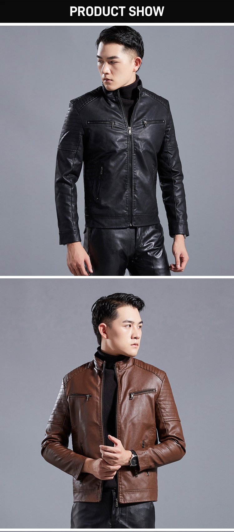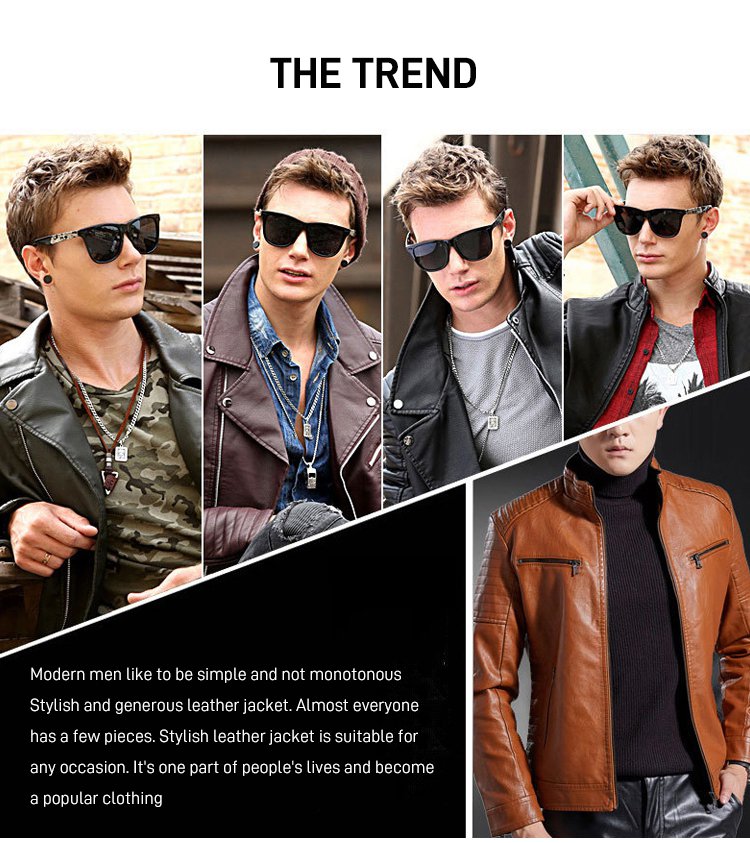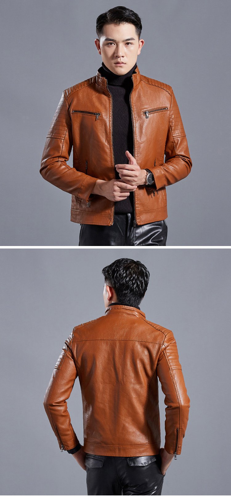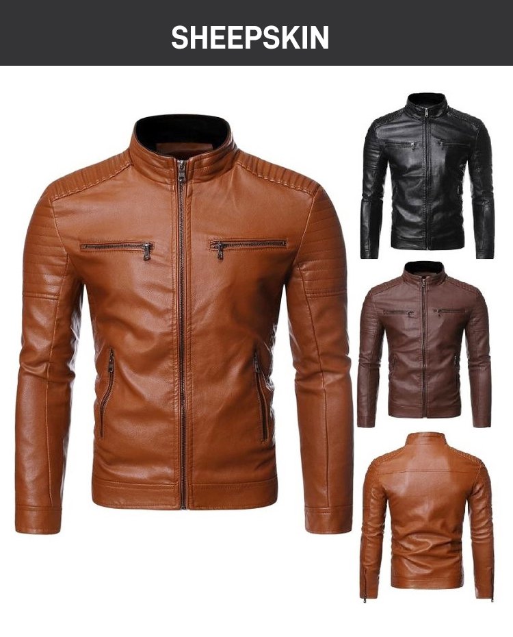 Stand-up collar men's biker leather jacket